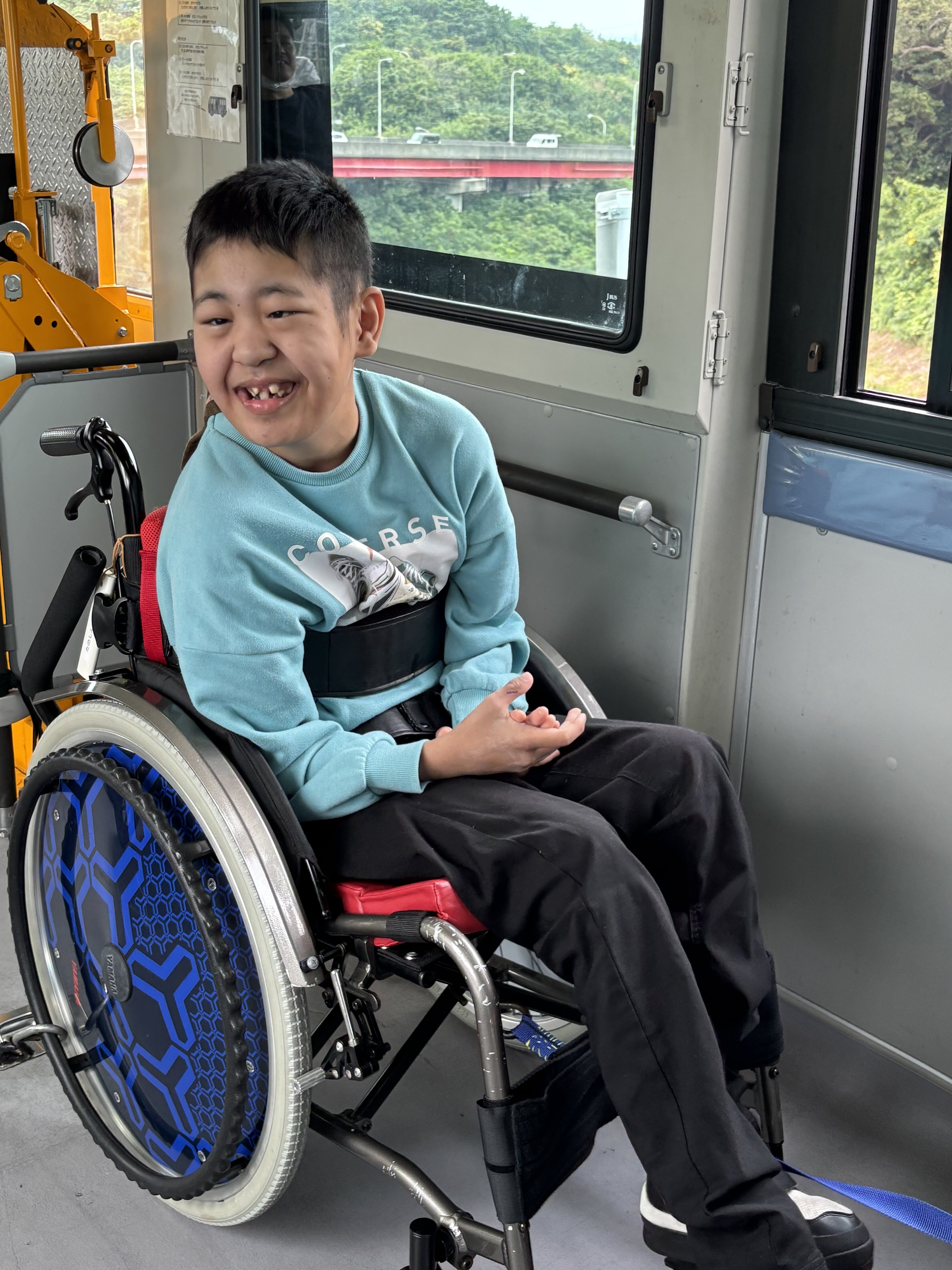 心春さんの感想です。「新聞コンクールで入賞したって聞いたとき、ドキドキわくわく心がはずみました。表しょう式の時、ぶ台がきれいでホールのじゅうたんが真っ青でうれしかったです。賞じょうをもらうときは、一人で車いすをこいできんちょうしたけどほこらしい気持ちになりました。」