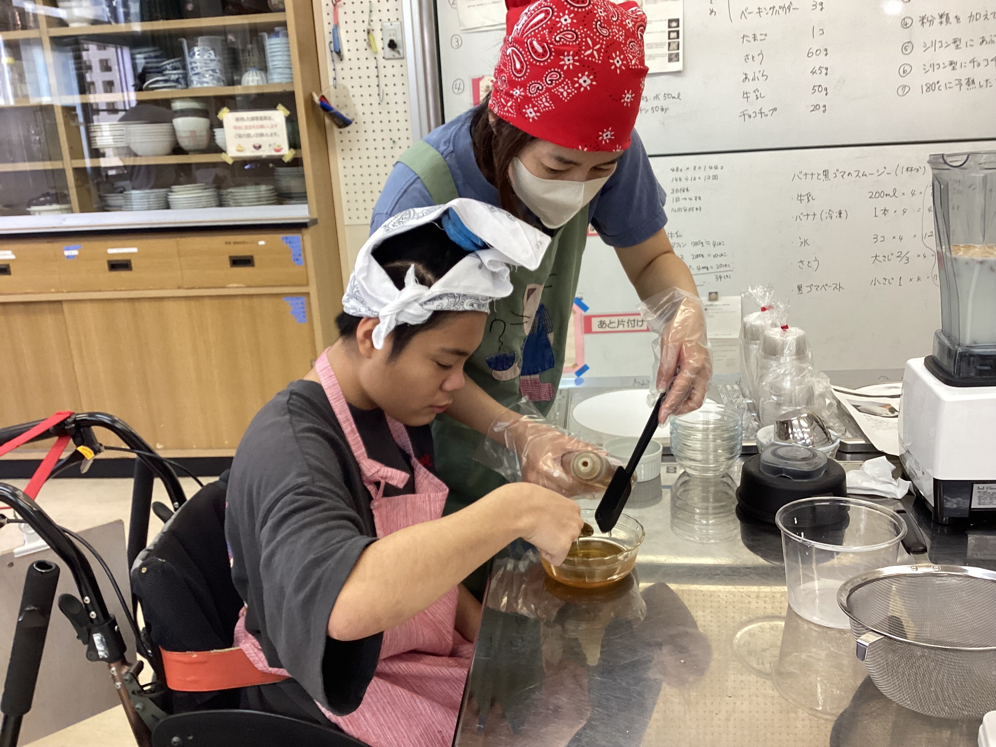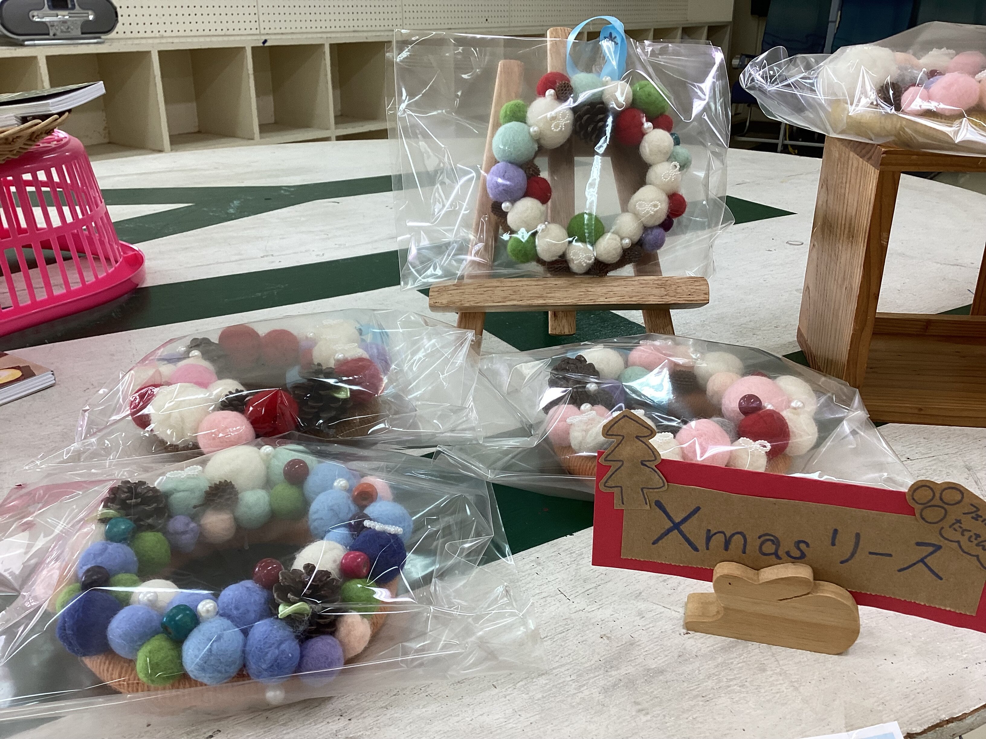 1組は、日頃の学習で制作してきた手作りリースやスムージーなどの販売を担当しました。自分たちの手で作った商品をお客さまに説明し、受け渡しや会計まで丁寧に行う姿がとても頼もしく、地域の方々からも温かい声をかけていただきました。